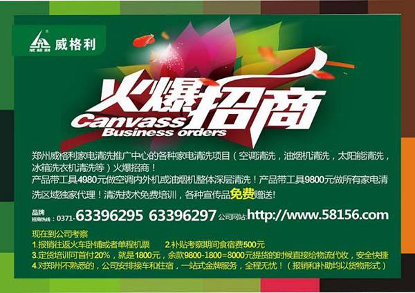 1、*費加盟、*費提供清洗技術(shù)、*費提供宣傳促銷品