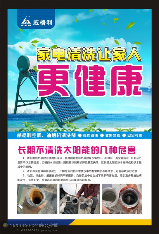 而水垢堵塞管道后,造成水流不暢,使得你經(jīng)常更換水龍頭,增加經(jīng)濟負擔。水垢還可能劃傷你的皮膚,堵塞毛孔,引起各種皮膚病。有些婦女、兒童洗完澡后有時感到皮膚瘙癢和起紅點。為了我們的健康舒適的生活,和延長太陽能設備的使用壽命一定要定期*清洗太陽能熱水器。