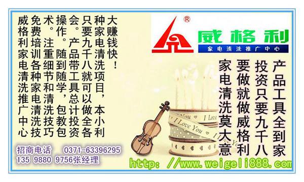 如果你想創(chuàng)業(yè),又找不到投資方向,請(qǐng)聯(lián)系我們。如果你在做家電制冷維修,那么家電清洗無疑使你多了一項(xiàng)增值項(xiàng)目。如果你做著家政保潔,那么在不增加人力的情況下加一項(xiàng)清洗項(xiàng)目,多一份收益,何樂而不為呢。如果你是在銷售家用電器,還要為售后服務(wù)不完善發(fā)愁嗎,家電清洗服務(wù)是不錯(cuò)的選擇。