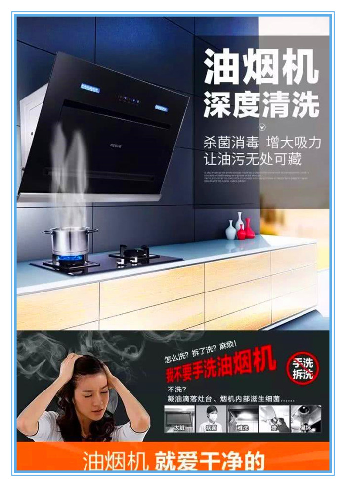 而家電清潔服務卻沒有隨著高增長的經(jīng)濟發(fā)展起來,可以說一直是個*油煙機清洗劑為很多家電解決了這問題。