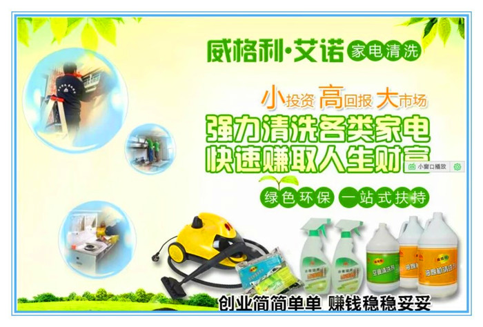 威格利家電清洗現(xiàn)在特惠招商:沒有加盟費,*費培訓各種家電清洗技術(shù) ,*費配送各種宣傳品,產(chǎn)品帶工具*只要9800元就可以加盟從事這個行業(yè)!