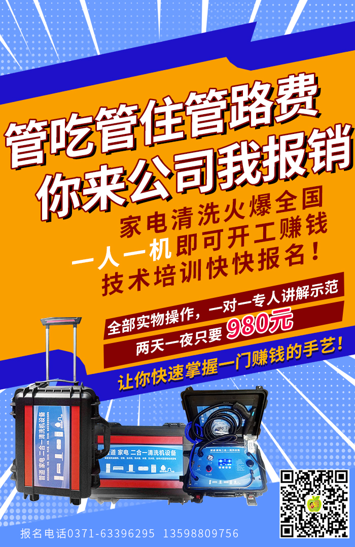 如果對家電清洗行業(yè)有決定做的話,*還是實(shí)地到我們鄭州威格利家電清洗中心實(shí)地考察一下,看看產(chǎn)品,設(shè)備,效果,以及更多的市場推廣方面的經(jīng)驗(yàn)和方法的分享等。說實(shí)話,做家電清洗,*重要的就是有效的適合當(dāng)?shù)厥袌龅男麄?。只要宣傳得?dāng),又會有很多的用戶。