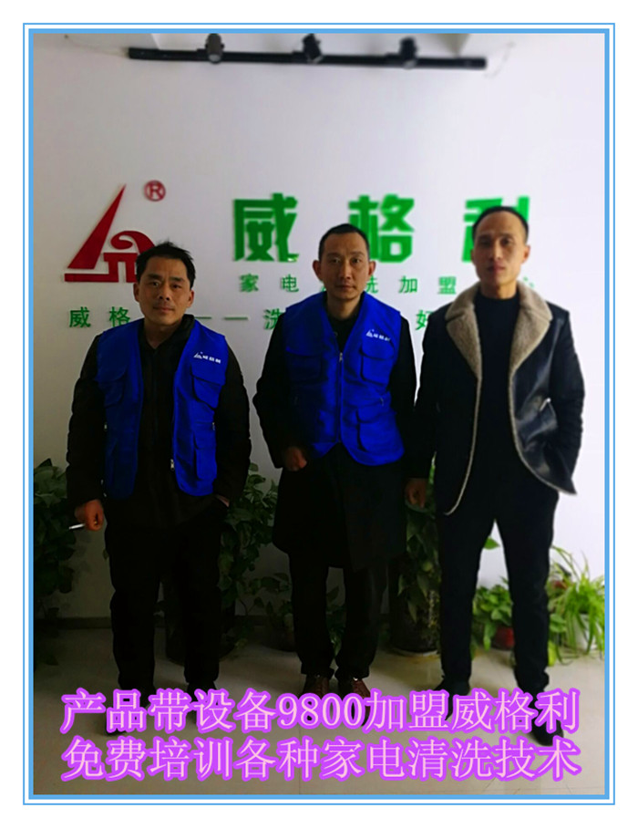加盟家電清洗為什么要找威格利?很簡單:1.沒加盟費。家電清洗*能機一體機+蒸汽臭氧消毒機+300瓶家電清洗劑,只要9800元就算加盟。2.*的清洗技術(shù),包括各種家電清洗技術(shù),自來水管道清洗地暖清洗大型油煙機清洗技術(shù),統(tǒng)統(tǒng)*費培訓(xùn)。。3.不加盟的,只想買產(chǎn)品或者設(shè)備,可以的!各種家電清洗設(shè)備管道清洗設(shè)備大型油煙機中央空調(diào)清洗設(shè)備都有,*品質(zhì),薄利多銷,*程售后支持,買貴了退你雙倍差價,就這么簡單?。?!