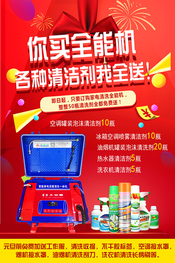 即日起,只要訂購家電清洗*能機(jī),整整50瓶清洗劑*都*費(fèi)送!