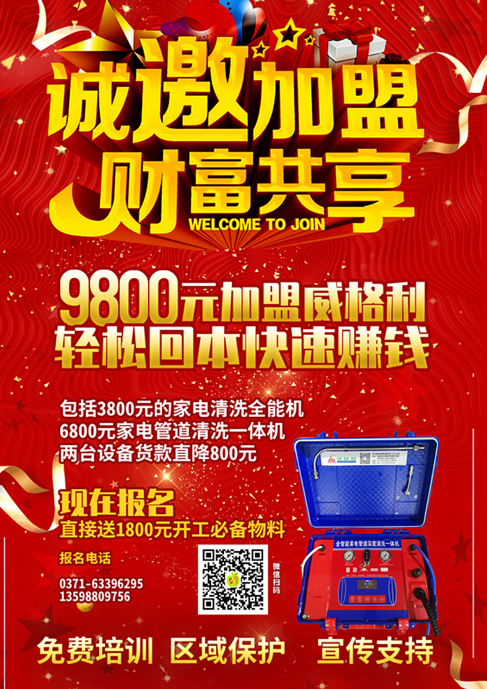 第三種類型就是做產(chǎn)品和設(shè)備的,相對的經(jīng)營模式也簡單,主要是提供清洗工具和技術(shù)。掙的是生產(chǎn)的利潤,這里面可以重點關(guān)注一下威格利這個牌子,他們從2002年到現(xiàn)在,差不多做了快20年了,產(chǎn)品的性能質(zhì)量效果和售后服務(wù),都是相當(dāng)不錯的。這家公司的經(jīng)營準(zhǔn)則就是讓每個客戶都少花錢多辦事,直接工廠價直銷,還*費培訓(xùn)各種家電清洗技術(shù)。相應(yīng)的比單*做加盟的那種,要實惠的多,東西也便宜的多。