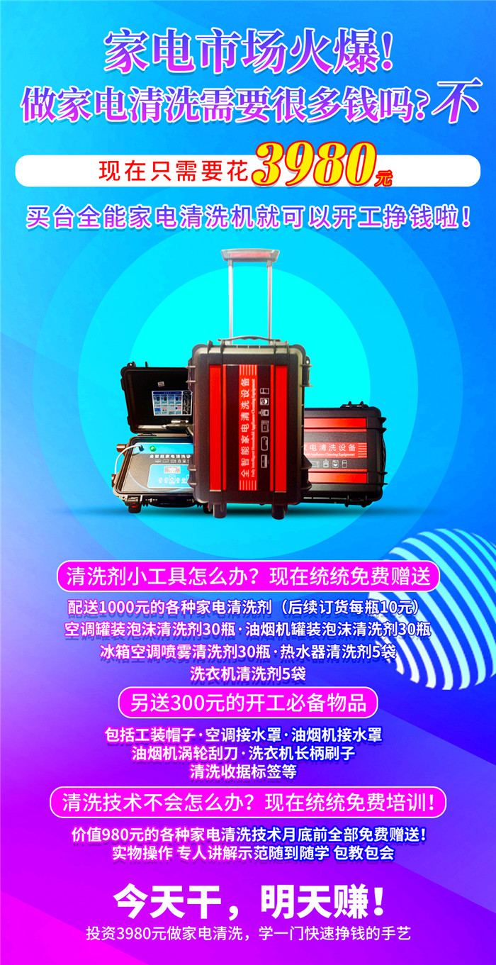 現(xiàn)在只需要花3980元買臺*能家電清洗機(jī)就可以開工掙錢啦!