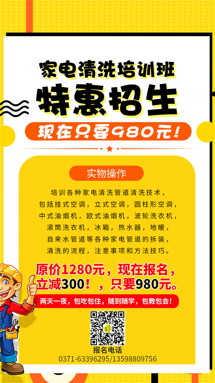 洛陽家電清洗培訓(xùn)上崗后的師傅供不應(yīng)求很搶手