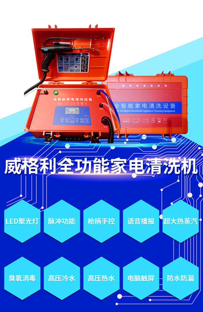 現(xiàn)在要想干家電清洗,只需要花3200塊錢買臺(tái)威格利*能家電清洗機(jī)就可以開工干活。這臺(tái)*能家電清洗機(jī)具有高溫高壓、冷水高壓、熱水、熱蒸汽、臭氧消毒以及脈沖清洗等功能??梢暂p松的清洗各種家電,比如空調(diào)、油煙機(jī)、冰箱、洗衣機(jī)、熱水器等。